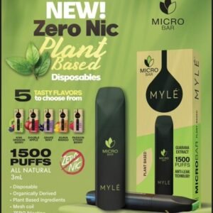 Myle Micro Bar premium its sleek and compact design makes it easy to take with you on the go zero nicotine plant based disposables, while its large 3ml capacity ensures that you never run out of power until end of puff count. With a mesh coil organic derived and beautiful design plant based all-natural ingredient Guarana reduces fatigue throughout the day. MYLE Micro Bar Disposable 0mg