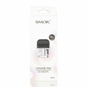 Novo X Replacement Pods, featuring a 2mL refillable capacity, silicone stoppered side fill system, and utilizes an integrated 0.8ohm DC MTL Coil.