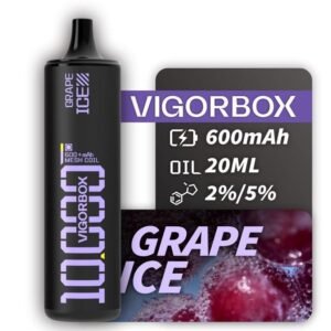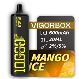 Whether you’re a vaping enthusiast or looking to explore new flavors, the VigorBox Disposable 10K Puffs – Mint Ice is a must-try sensation. Immerse yourself in the coolness of mint, enhanced by a frosty twist, all conveniently packaged in a disposable vape pen. Elevate your vaping experience with the VigorBox Disposable and enjoy puff after puff of refreshing delight.